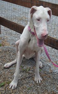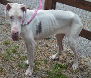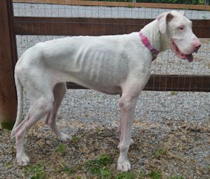 Update: I have gained all my weight, I now weigh 135 pounds!! I no longer have mange and life is wonderful!!! Neither Felina or I will be going to have the Baer test, there is no doubt in anyone's mind that we are both deaf. I am NOW ready for adoption!! I am a very sweet, loving and gentle girl and would love a wonderful forever home that will help me to forget the cruelty that I have seen in my life!! Check out my new pictures below!!! Please can you spare a