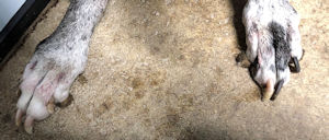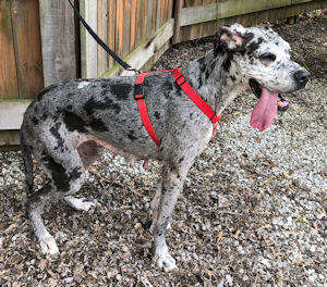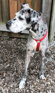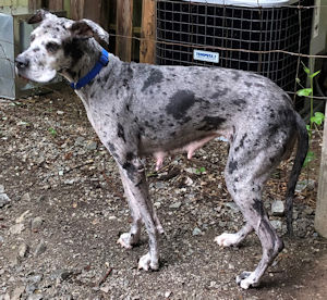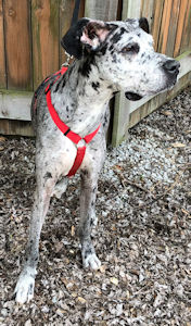 Kleo Interested in adopting me? Click here for our >> Adoption Procedures I was brought to Harlequin Haven when my dad became ill, and my family was moving in with my human sister. I have not seen a veterinarian since I was a puppy, and I am almost 11 years old, so I was behind on everything! Within hours of arriving, I had my nails cut (that was scary but oh do my paws feel so much better), my ears cleaned (I have never enjoyed anything as much as getting my ears cleaned below are pics from 1 ear) and was heartworm tested, vaccinated, and had my blood pulled!! I was also started on a NSAID to help me stand better and reduce the pain, wow has that helped! Hopefully, I can be spayed really soon as I am tired of these heat cycles and false pregnancies. I am a very sweet but tiny girl; I weigh only 83 pounds. Update 6:20:Wow it is amazing what a few days of clean ears, shorter nails (Grandma says I need another trimming of my nails) and especially the NSAID!! Okay I had no clue what an NSAID was, but wow did that little pill make a difference. Plus, I have already had it reduced from twice a day to just once a day!! Grandma says less is better as long as I feel good and YEP, I feel good!! Check out my new pictures below!! Update 7/2: Well I have some great news!! I have been spayed and I never have to have another litter or puppies!!! PLUS I am NOW ready to find my forever home!!! Okay so who wants an old lady that has a LOT to say!!! Please can you spare a
