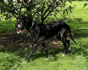 Axle - Sanctuary On July 6, 2022, a tornado hit Goshen, Ohio and it changed my life forever. My dad had been taken to the hospital a few weeks earlier than the horrible tornado hit and although our home did not receive tornado damage, we lost electric for weeks to come. Then due to the horrible heat and we still had no electric my mom ended up in the hospital as well. With no one left at home my Uncle Joe who lives in Arizona contacted Harlequin Haven to see if they could help me. What he did not know is that I had not seen people up close other than my mom and dad for years. I had scared a vet tech after she scared me and of course it was my fault so because they were afraid, I might bite someone that it was safer to not have me around people. When my Aunt Brenda came to bring me to Harlequin Haven, she was a bit afraid of me but HEY I love car rides, so I jumped in with her and off we went. But things quickly went south for me cause once we arrived, and I got out to relieve myself, Aunt Brenda left!! I was scared but I decided I could stay here till Aunt Brenda came back for me, but hours, lead to days, lead to weeks, and she never returned. Then I decided to go on a hungry strike and Grandma here at the rescue was at a loss at what to do for me. I would not let her touch me and too be honest I did not want her or anyone anywhere near me. Finally, she contacted my Uncle Joe and asked him for help. He contacted my dad's sister Aunt Eva and she brought my mommy out to see me!! I was sooooo happy!! When mommy left, she told me to trust Grandma that she would not hurt me. So, I did!! Unfortunately, a few weeks later Grandma gave me the really bad news, my mom and dad were not healthy enough to take me back so I would have to stay here at the rescue. At first, I was again really angry, but Lynn told me to trust Grandma, and all would be good. So, I did and ya know what, life is not that bad!! Grandma and the volunteers give me hugs and kisses, plus yummy treats and I have tons of toys to play with and Lynn even shares the love seat with me!! Although I do miss my mommy and daddy at times overall life is good. Just a quick update!! I really missed Lynn when she got adopted but ya know life is good!! I now have the loveseat and more hugs and kisses from Grandma and the volunteers so actually life is great!! Please can you spare a