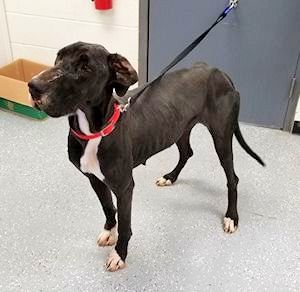 Click here for more pictures Before Pictures & My Story Below My brother Kaylor and I were bought from a backyard breeder and when we got to our new home we were welcomed with chains and dog houses!! Well life finally got better once we turned a year old and our owner decided they could no longer afford to care for us, so they took us to the Hardin County Animal Shelter!! The wonderful people at the shelter contacted Harlequin Haven to come for us! We are now here at the rescue and WOW life just keeps getting better!! Heck we thought we had hit the jackpot at the shelter but here we have soft beds, tons of toys and we are both being fed 4 times per day plus we have already made tons of new friends. Well Grandma said we have to stop playing on the computer and come and eat lunch. I have 20 plus pounds to gain, I only weigh 85 pounds. Grandma says we need to relax and play with our toys after we eat lunch!! Tomorrow she said we both will get bathes, my brother says I need a bath that I stink! UGH haven't we been rained on enough, but she says this is different!