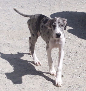 Click here for more pictures Before Pictures & My Story Below My owners purchased me from a backyard breeder when they thought that their other dog would enjoy having a Great Dane for a companion. Unfortunately all I did was stress the other dog out. They wanted me to find the best home possible so they contacted Harlequin Haven. I am now ready for adoption!! I am growing like a weed so everytime I gain weight I shoot up!! I am a very sweet girl and want a forever home!! Kailey and I were out playing the other day and Grandma got a couple of pics of us. Check out my new pictures below.