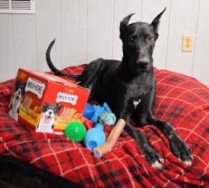 back to normal and hopefully the pain eases up as well. Update 12/25: SANTA IS REAL!! I had heard about this fat man that wears a red suit an rides in a sleigh pulled by reindeer and delivers toys to all the good dogs, but I thought the other dogs were lying to me!! I woke up this morning to find new toys and a box of dog biscuits!! So I played with my toys then I went to get a couple of my dog biscuits and there was NO biscuits!! Instead I had another toy, a snuggly blanket, a leash and collar and a bunch of yummy dog treats!! Santa was messing with me!!! What a Great Day!! Update 4/13: Time sure flies when you are having fun and Willow and I are having fun!!! Today while we were outside playing the volunteers said we had to be serious for a minute and get our pictures taken. Check out my pictures below!! I have grown into a handsome young man, haven't I?