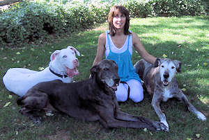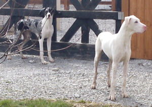 Click here for more pictures Before Pictures & My Story Below I was purchased from a backyard breeder when I was just 7 weeks old. The breeder told my mom that she was going to have to euthanize me because I was deaf. My mom thought she could give me a forever home but her other dog a senior terrier was not thrilled having a bouncy puppy in the home and kept biting me in the face, mom was afraid that she would hurt me. Although mom loved me she felt it was best if I was brought to Harlequin Haven to find a safe forever home. I am a very sweet and smart young lady and will make someone a wonderful Dane but I do need a kind and loving hearing dog in the home to help me with daily living. Update